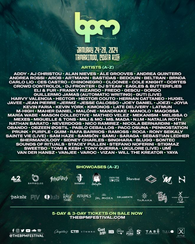 NEWS THE BPM FESTIVAL: COSTA RICA 2024 REVEALS PHASE TWO LINEUP & DAILY SCHEDULE BOASTING 40+ NEW NAMES INCLUDING CLOONEE, HECTOR, LATMUN, MALÓNE, PABLO CEBALLOS, STEFANO NOFERINI, VANJEE, YAYA, AND MORE