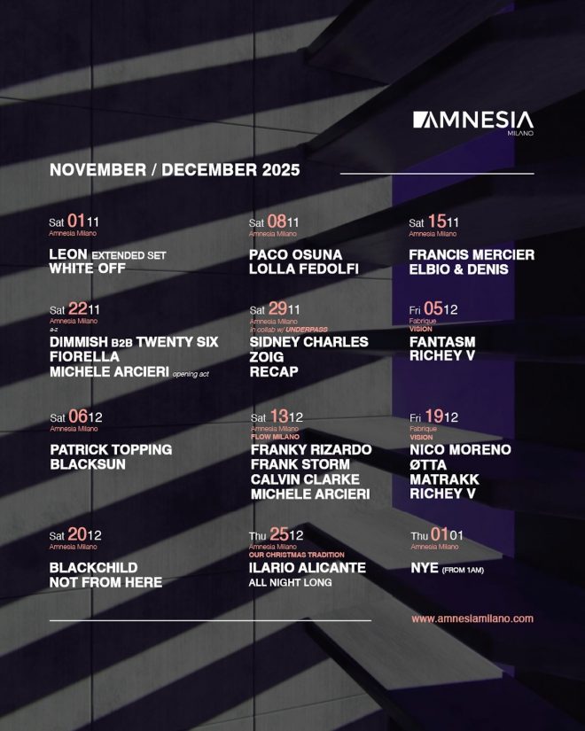 Ed ecco quindi come “destroy to rebuild” non è per cambiare capitolo, ma per scrivere una storia totalmente nuova. Con questo spirito, nell’ottobre 2025 Amnesia Milano ha riaperto le sue porte inaugurando la stagione numero ventitré, dopo essere stato letteralmente riportato allo stato zero e ricostruito in ogni singolo dettaglio.
