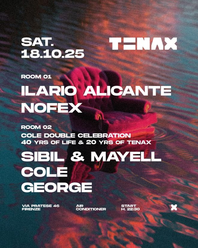 E sarà proprio sabato, con una line-up che unisce radici e futuro, che la Room 2 si accenderà di nuova energia: Sibil & Mayell, resident e menti di Luck Is On, porteranno la loro visione fresca e analogica accanto a George, altro pilastro del Tenax, e lo stesso Cole, in una notte pensata come un viaggio condiviso, senza filtri, senza barriere.